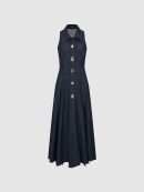 Sleeveless Button Detail Pleated Denim Dresses